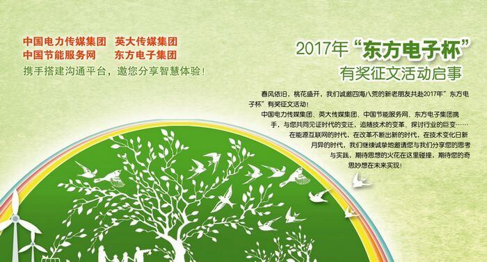 (4)郵件題目請注明創意大賽投稿;投稿人需在郵件正文中注明姓名(可加作者簡介)、單位、聯系電話、郵寄地址;征文以附件形式發送;獲獎名單將在中國電力報、國家電網報、中國節能服務雜志等報刊上公布。