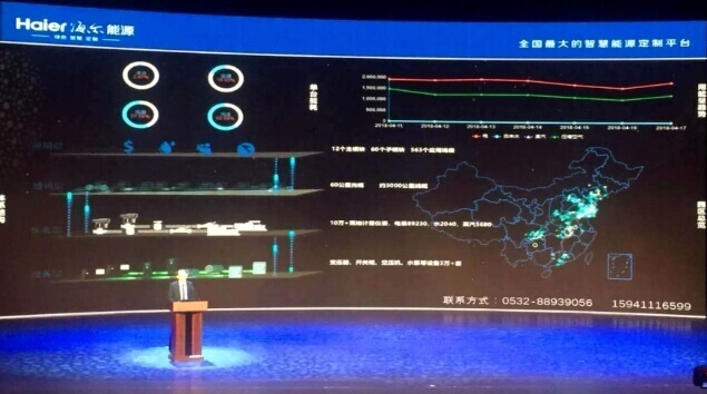 由我公司實施搭建的國內最大的智慧能源定制平臺——海爾集團智慧能源大數據互聯控制中心上線運行一年多來節約能耗成效顯著。2017年,海爾集團單臺產品能耗下降了26.93%,節約能源費用1.32億元。