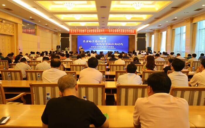 市工業和信息化局局長姜開主持會議,丁總、海爾馬總作報告