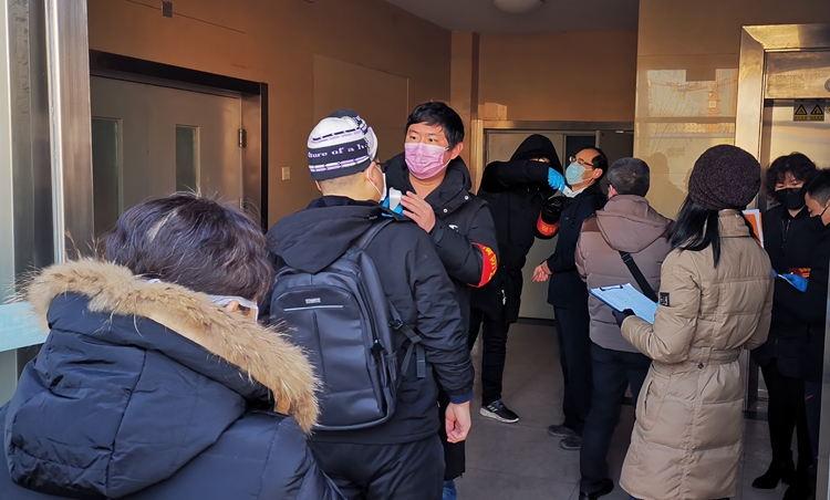 在公司總部四個(gè)辦公場(chǎng)所入口,各單位領(lǐng)導(dǎo)在現(xiàn)場(chǎng)維持秩序;各支部黨員們沖鋒在前,測(cè)體溫、消毒、登記一絲不茍。