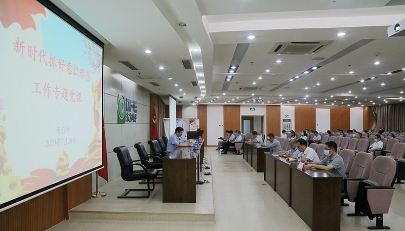 表彰頒獎結束后,公司黨委書記楊恒坤為大家講了新時代抓好意識形態工作專題黨課,楊書記結合當前國內外政治經濟形勢,充分闡述了現階段抓好意識形態工作的重要性和必要性。他強調,意識形態工作本質上是政治工作,要旗幟鮮明講政治,增強“四個意識”,做到“兩個維護”。要堅持以人民為中心的工作導向,為黨的中心工作服務,要加強正面宣傳,營造強大的正面思想輿論。他指出,新時代意識形態領域形勢依然錯綜復雜,面臨的風險挑戰依然嚴峻,我們必須牢牢掌握意識形態工作領導權,堅持黨管意識形態,黨管宣傳,切實抓好意識形態工作責任制落實,鞏固全黨全社會思想上的團結統一。