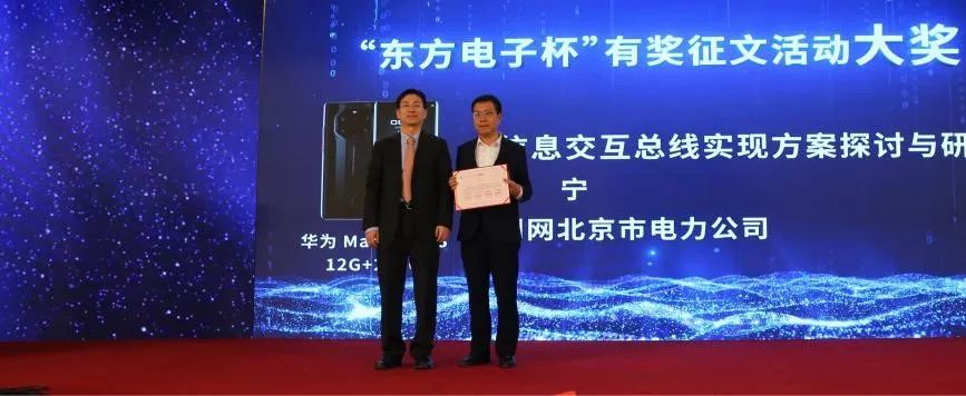 中國電力傳媒總經理、黨委副書記郝興國,國網卓越科技總經理孔志國,中國電工技術學會控制與保護專委會秘書長韓萬林為二等獎獲得者頒獎