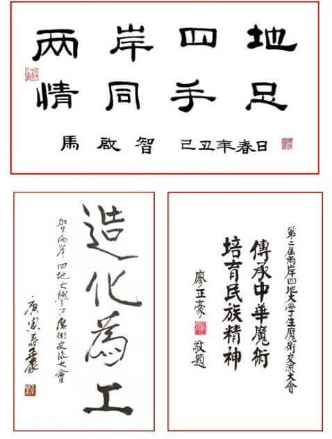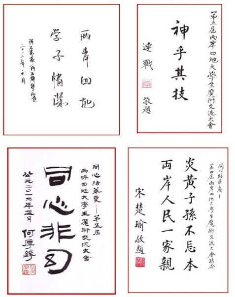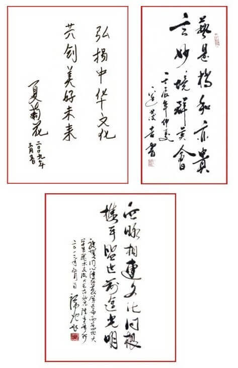 最近,組委會紛紛接到來自臺灣、澳門及大陸各高層領導為本次活動的題詞。他們是,中國國民黨名譽主席連戰;澳門前特首、全國政協副主席何厚鏵;全國政協副主席阿不來提.阿不都熱西提;中國文聯副主席邊發吉;第十屆全國人大代表、湖南省政協副主席、現任中國民族文化藝術基金會名譽理事長譚仲池;歷屆為本活動題詞的領導有:中國親民黨主席宋楚瑜;前文化部部長、當代著名作家王蒙;第十六屆中央委員、全國人大民族委員會主任馬啟智;臺灣前法務部部長、臺灣財團法人向陽公益基金會會長廖正豪;前任中國文聯副主席夏菊花等。在此,組委會向一直關注及鼓勵我們的社會各界領導及同仁們表示由衷的感謝!