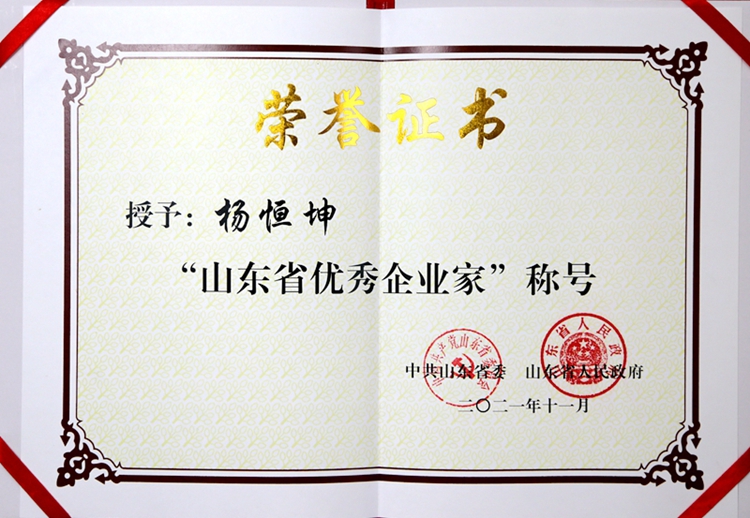 2月7日上午,春節(jié)后上班第一天,山東省召開2022年工作動(dòng)員大會(huì),首次現(xiàn)場(chǎng)表彰對(duì)山東發(fā)展作出突出貢獻(xiàn)的72名企業(yè)家,我集團(tuán)公司董事長(zhǎng)楊恒坤被山東省委、省政府授予“山東省優(yōu)秀企業(yè)家”稱號(hào)。