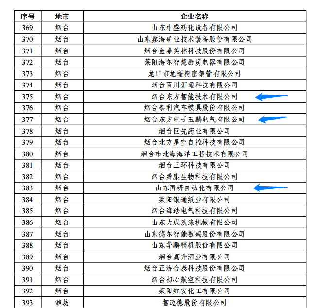 日前,由山東省工信廳、山東省地方金融監(jiān)管局、中國人民銀行濟南分行聯(lián)合評選認定的2022年度山東省“瞪羚”企業(yè)名單正式公布。我集團公司的煙臺云南護航叁農(nóng)通企業(yè)管理咨詢有限公司玉麟電氣有限公司、山東國研自動化有限公司、煙臺東方智能技術(shù)有限公司等三家權(quán)屬企業(yè)入選,認定日期為即日起至2025年12月31日。
