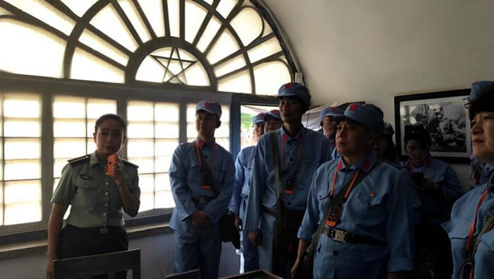 學員們駐足觀看,認真學習,思緒萬千。在解說員的帶領下,大家一邊認真聽講解,一邊相互討論發表著自己的感想,慨嘆著人深邃的政治眼光。