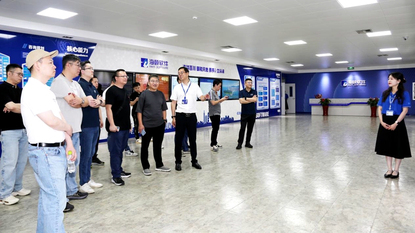 研學(xué)團(tuán)參觀了海頤軟件數(shù)字展廳,海頤軟件總經(jīng)理李慧霖以海頤軟件的發(fā)展歷程為主線,詳細(xì)介紹了海頤軟件發(fā)展戰(zhàn)略、企業(yè)文化、核心能力及榮譽(yù)資質(zhì)等。